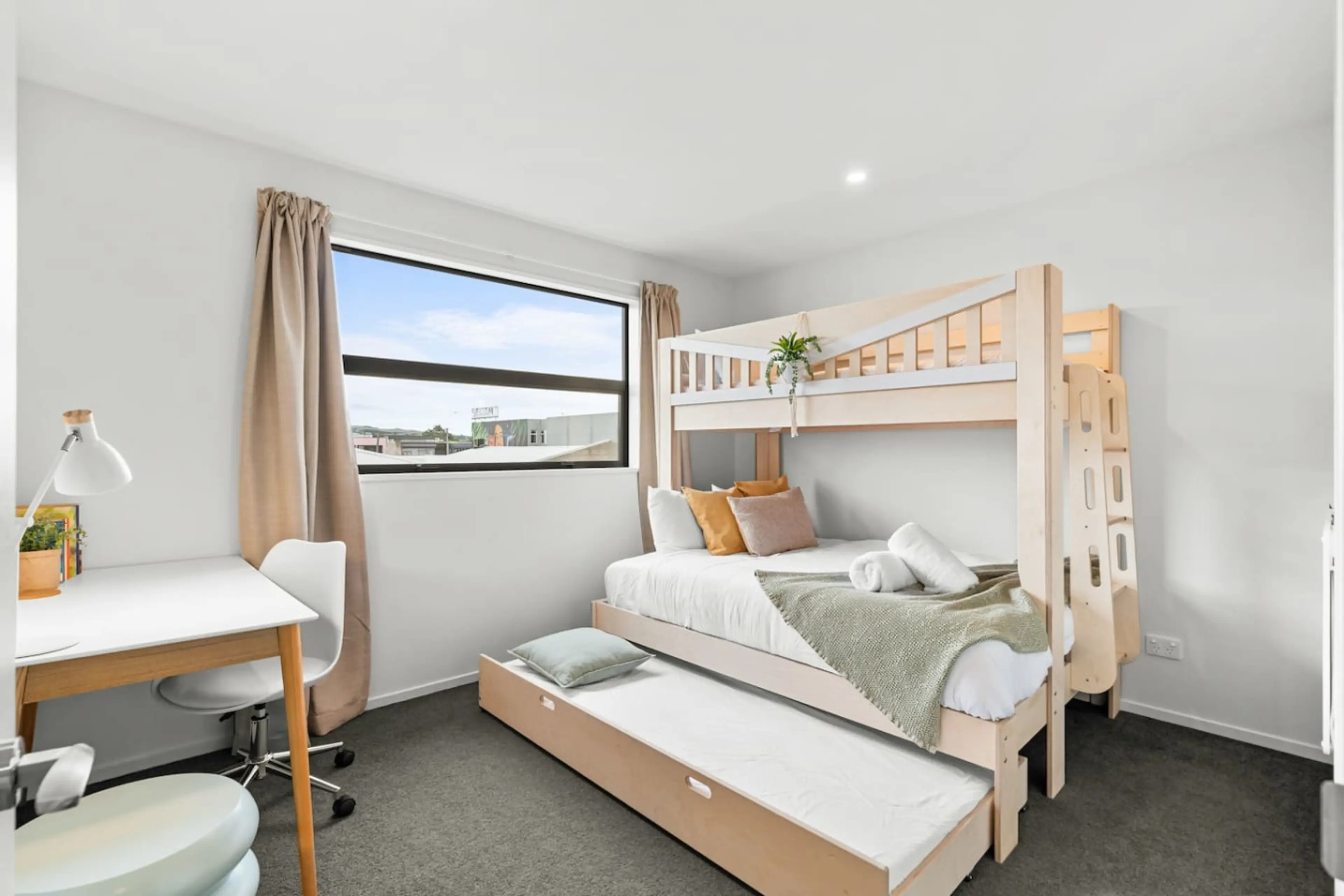 Each bedroom has its own ensuite, making it perfect for families, groups, and business travellers. Just a short walk to the Cardboard Cathedral, Te Kaha Stadium, top cafés, and the city centre. Includes free parking, fast WiFi, air-conditioning, and a fully equipped kitchen. Enjoy comfort, privacy...